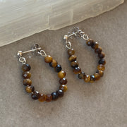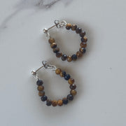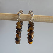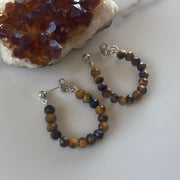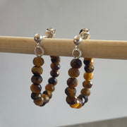 Sterling Silver Faceted Natural Tigers Eye Hoop Stud Handmade Earrings