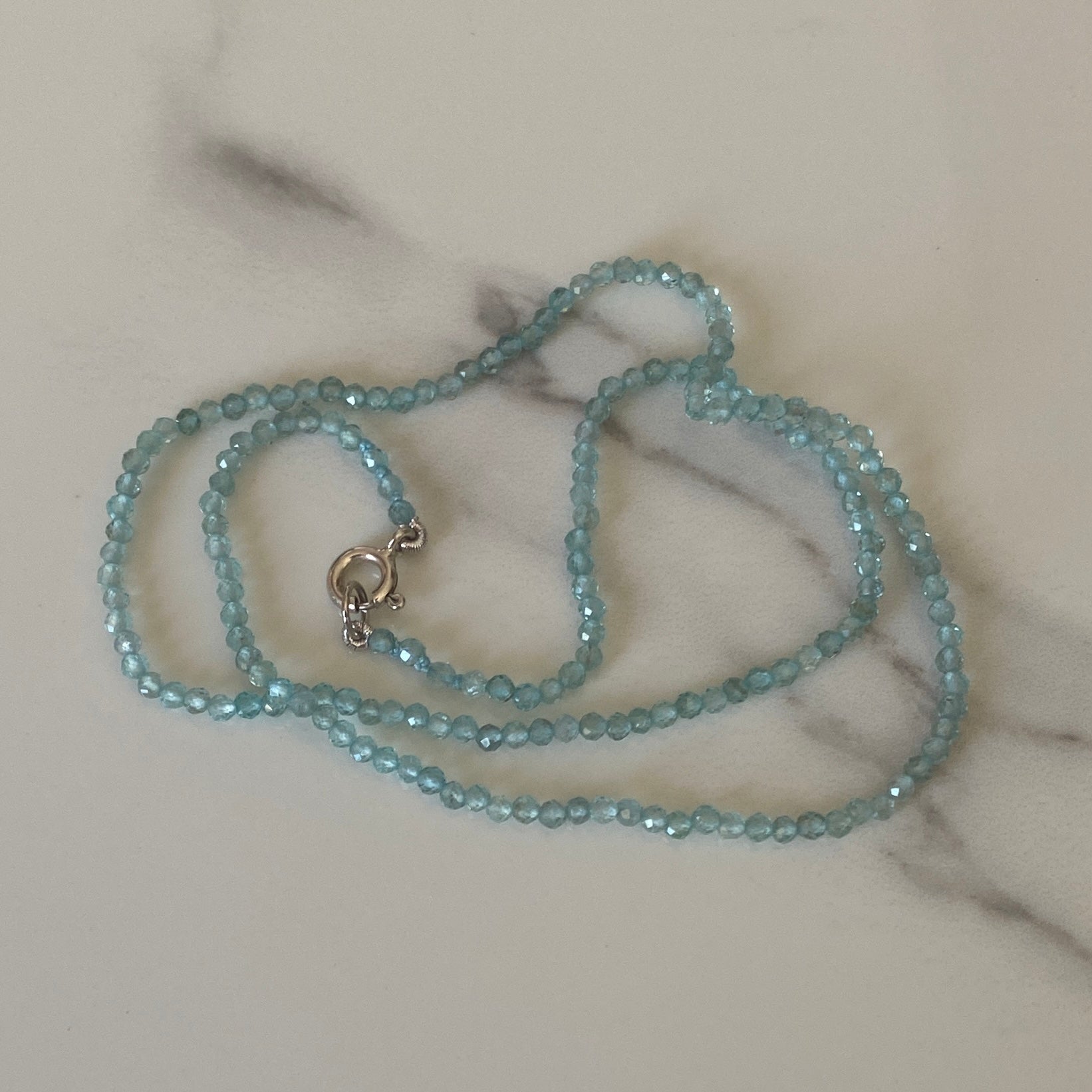Crafted with natural AAA-grade faceted Neon Apatite and sterling silver, this handcrafted necklace exudes elegance and sophistication. The sparkling gemstones and intricate detail makes it a one-of-a-kind piece that adds a touch of luxury to any outfit. Upgrade your jewellery collection with this breathtaking necklace.
